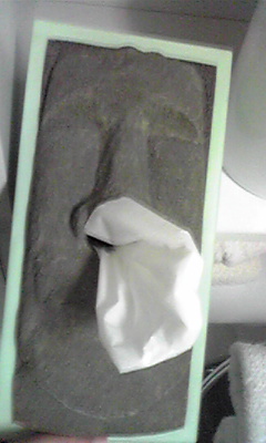 (因みに画像は、私の揉んでもらう部屋に置いてあるモアイティッシュ箱。以前のアシスタント先にも同じものがあったのです。)