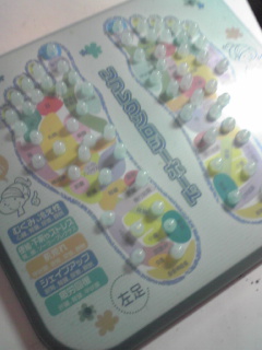 それと、前回の日記を打った後にまたチョコが届きました。その中にこのリフレクソロジーボード(こんな名称だったのか…)が!今何かというとスタッフ皆で乗っています。