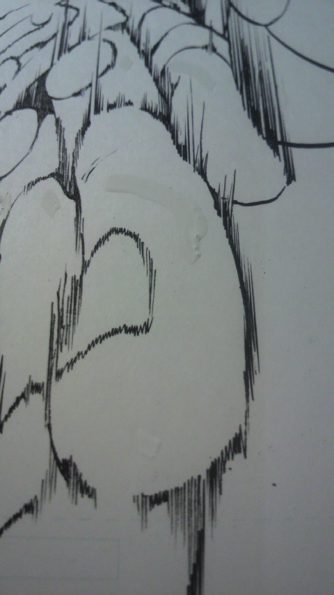 今日は大事な用があるので、アシスタントさんらは寝せて、一人でペン入れ進めてます。