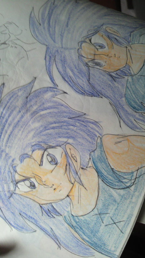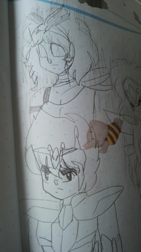 このキャラクターは、以前エニックスでの読み切りで描かせて頂いた子なのですが、ロスキャンの作業中に仙台の友達が、地震で荒れた部屋を片付けている途中にメールで、「こんなの出てきた」って、その時のGファンタジーの写メを送って来てくれたのが、なんだかとても嬉しかったので…。