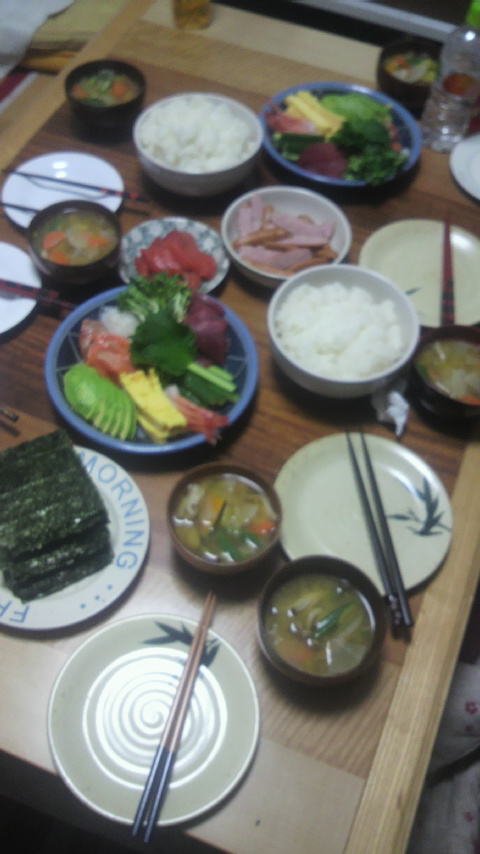 画像は昨年最後のアシスタントさん達とのご飯の手巻き寿司と、初詣に行った神社の屋台のお好み焼きです!